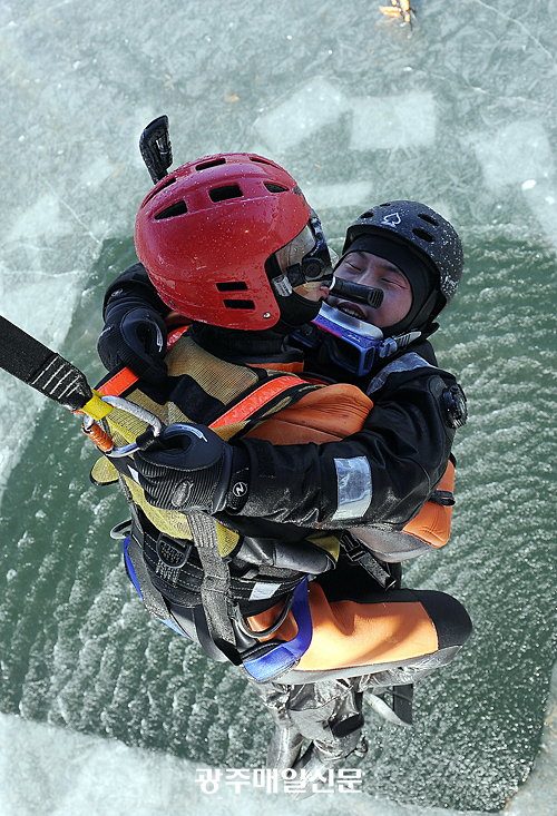 9ÀÏ ¿ÀÀü °æ±âµµ ¿ëÀνà À̵¿¸é ¾ó¾îºÙÀº Àú¼öÁö¿¡¼­ ¼Ò¹æÀç³­º»ºÎ ±¸Á¶´ë¿øµéÀÌ ¾óÀ½¹°¿¡ ºüÁø°ÍÀ» °¡»óÇØ ÀÎ¸í ±¸Á¶ÈÆ·ÃÀ» ½Ç½ÃÇϰí ÀÖ´Ù. /¿¬ÇÕ´º½º