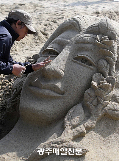 2ÀÏ ºÎ»ê ÇØ¿î´ëÇØ¼ö¿åÀå¿¡¼­ ¸ð·¡Á¶°¢°¡ ±è±æ¸¸¾¾°¡ µ¿¹é²É ¾Æ°¡¾¾¸¦ ÁÖÁ¦·Î ¸ð·¡Á¶°¢À» ¸¸µé°í ÀÖ´Ù. /¿¬ÇÕ´º½º