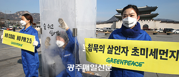 ±¹Á¦È¯°æ´Üü ±×¸°Çǽº °ü°èÀÚµéÀÌ Áö³­ 6ÀÏ ¿ÀÀü ¼­¿ï Á¾·Î±¸ ±¤È­¹® ±¤Àå¿¡¼­ Ãʹ̼¼¸ÕÁöÀÇ ½É°¢¼ºÀ» ¾Ë¸®°í Ãʹ̼¼¸ÕÁöÀÇ ¹ß»ý¿ø °¡¿îµ¥ ÇϳªÀÎ ³°Àº ¼®ÅºÈ­·Â¹ßÀüÀ» ÁÙ¿©°¥ °ÍÀ» °­Á¶ÇÏ´Â ÆÛÆ÷¸Õ½º¸¦ Çϰí ÀÖ´Ù. /¿¬ÇÕ´º½º