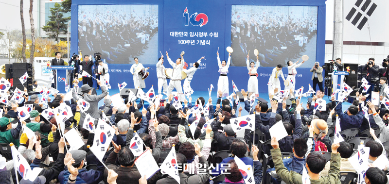 ´ëÇѹα¹ ÀÓ½ÃÁ¤ºÎ ¼ö¸³ 100ÁÖ³âÀ» ±â¸®´Â Çà»ç°¡ 11ÀÏ ±¤ÁÖ¿Í Àü³²¿¡¼ ÀÕµû¶ó ¿·È´Ù.
