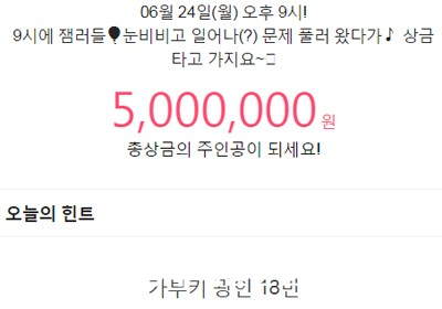 ¿À´Ã ¹ã 9½Ã¿¡ ¹æ¼ÛµÇ´Â Àë¶óÀ̺ê´Â ÃÑ 5¹é¸¸¿øÀÇ »ó±ÝÀÌ °É·ÁÀÖ´Ù.