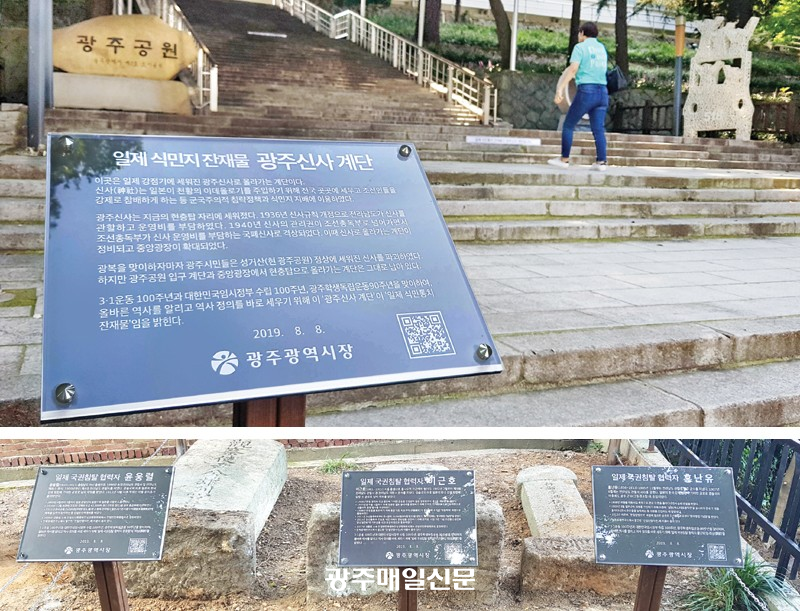 ±¤ÁÖ°ø¿ø ³» ½Å»ç°è´Ü¿¡´Â ¡®ÀÏÁ¦ ½Ä¹ÎÅëÄ¡ ÀÜÀç¹°ÀÎ ±¤ÁÖ½Å»ç °è´ÜÀÔ´Ï´Ù¡¯ ¹®±¸¸¦ °è´Ü¿¡ ºÎÂøÇØ ¹ú½áºÎÅÍ ¹æ¹®°´µéÀÇ ¹ÝÀÀÀÌ ¶ß°Ì´Ù.