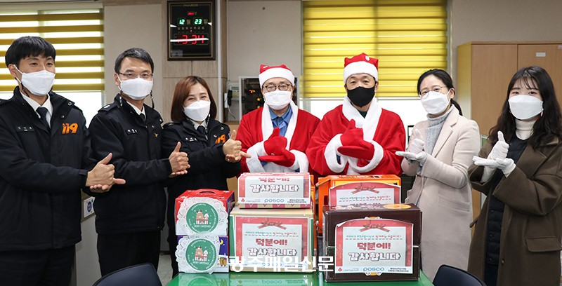 ±¤¾çÁ¦Ã¶¼Ò(¼ÒÀå À̽ÿì) ÇÁ·»Áî ºÀ»ç´ÜÀÌ Å©¸®½º¸¶½º¸¦ ¸Â¾Æ Äڷγª19 È®»ê ¹æÁö¸¦ À§ÇØ ³ë·ÂÇÏ´Â ±¤¾ç½Ãº¸°Ç¼Ò ¼±º°Áø·á¼Ò¿Í ±¤¾ç¼Ò¹æ¼ Á÷¿øµé¿¡°Ô Á÷Á¢ ¸¸µç ÄíŰ¿Í ÇÖÆÑ, À½·á µîÀ» Àü´ÞÇß´Ù.