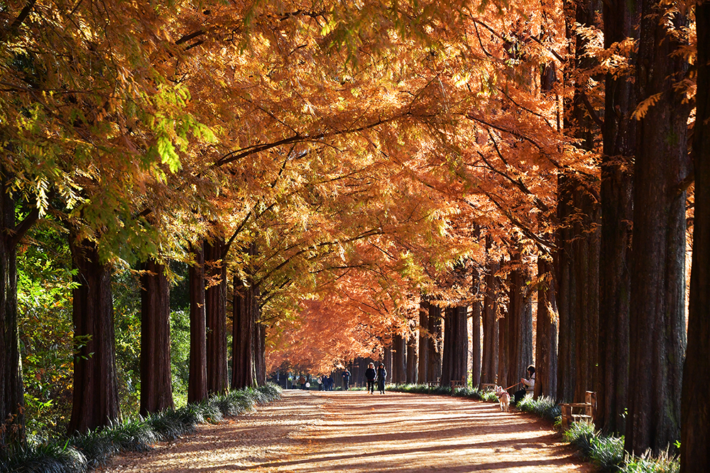 ¾ç¿·À¸·Î °ð°Ô »¸Àº ³ª¹«µéÀÌ ¸¸µé¾î³»´Â Á÷¼±ÀÇ ½£±æÀº »ç°èÀý ´Ù¸¥ ºû±òÀ» º¸¿©ÁÖÁö¸¸, ƯÈ÷ °¡À»ÀÌ¸é ºÓ°Ô ¹°µç ÀÙµéÀÌ Àå¾öÇÑ Ç³°æÀ» ¸¸µç´Ù. ±æÀ» °ÉÀ¸¸é ÇÑ ÆøÀÇ ¼öÃ¤È ¼ÓÀ» °Å´Ï´Â µíÇÑ Âø°¢ÀÌ µå´Â À̰÷Àº »çÁø ¸í¼Ò·Î ¾Ë·ÁÁö¸ç ÀþÀº ¿©Çà°´°ú °¡Á· ´ÜÀ§ ¹æ¹®°´µéÀÇ ¹ß±æÀÌ ²÷ÀÌÁö ¾Ê´Â´Ù.