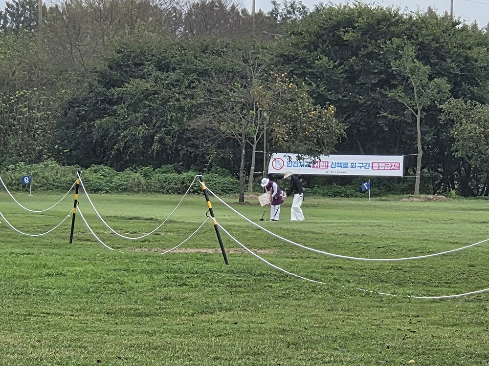 °ø¿ø Àܵð¹ç °÷°÷Àº °ñÇÁ°ø¿¡ ÆÄÀÎ ÈçÀûÀ¸·Î ¿òÇ« ÆÐ¿© ÀÖ¾ú´Ù. ¶ÇÇÑ ÆÄÅ©°ñÇÁ¸¦ Ä¡Áö ¾Ê´Â ¹Ý´ëÂÊÀº Àܵ𰡠ÀÚ¶ó ÀÖ´Â ¹Ý¸é, ÆÄÅ©°ñÇÁ¸¦ Ä¡´Â ±¸¿ªÀº Àܵð±ð´Â ±â°è°¡ Áö³ª°£ ÈçÀûÀÌ ¼±¸íÈ÷ ³²¾ÆÀÖ¾ú´Ù.