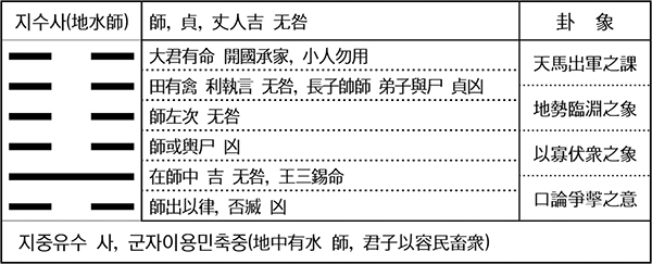 Á¡»ç¿¡¼ ¹«µ¿(ÙíÔÑ)ÀÇ »ç±¥<<¡Ø°¢ÁÖ =»ó¿Ð(ßÚèØ), ¶¥ ¼Ó¿¡ ¹°ÀÌ »çÀÌ´Ù. ±ºÀÚ´Â ¹é¼ºÀ» Æ÷¿ëÇÏ°í ¹«¸®¸¦ ±â¸¥´Ù(ò¢ñéêóâ©ÞÔ, ÏÖíì¤ é»ÚÅõåñë). »ç±¥(ÞÔÎÏ)´Â °¨±Ã»ï¼¼·Î ±¥´Â Ä¥¿ù¿¡ ¼ÓÇÑ´Ù(ÊìÏà߲ᦠÎÏáÕöÒêÅ). ³³°©Àº ÙæìÙ Ùæòã Ùæçí ͤõä ͤú¤ ͤë·À̰í Â÷¿ëÀº ëàõä ëàú¤ ëàë·ÀÌ´Ù. ¹«¸© Ä¥¿ù ¹× ³³°©¿¡ »ýÇÑ ÀÚ´Â °ø¸íºÎ±ÍÀÎÀÌ µÈ´Ù(ÛíßæåÚöÒêÅÐàÒ¡Ë£íº Íí٣ݣÏþñýìÑå¥). »çÀÚÀÇ ¶æÀ» ÃëÇÏ´Ï Å©¸é ´ëÁï»çºÎ, »çº¸, »çÀåÀÌ¿ä, ¹ö±ÝÀÎ Áï º´»ç, ¼±»ç, ¹ý»ç, ´ë»ç µîÀ¸·Î ÇÑ°á °°Áö ¾Ê´Ù(ÞÔí®ö¢ëù ÓÞöÎÞÔÜ÷, ÞÔÜÁ, ÞÔíâ, óöÎܲÞÔ àÉÞÔ, ÛöÞÔ, ÓÞÞÔ, Üôìé/Ü÷ ½º½Â ºÎ)>>¸¦ ¾òÀ¸¸é, »ç±¥´Â ÁöµµÀÚ¿Í °ü·ÃµÈ ±¥·Î¼ »ç¶÷ À§¿¡ ¼´Â ÀÚ´Â ¾ðÁ¦³ª ¾ðµ¿(åëÔÑ)À» »ï°¡ÇÏ°í »ç¿å(Þçé¯)À» ¹ö¸®¸ç ±»¼¼°Ô ³ª¾Æ°¡¸é ¶æÀ» ÀÌ·é´Ù. ±×·¯³ª ½Î¿ìÁö ¾Ê°í À̱â´Â °ÍÀ» ¿ì¼±À¸·Î »ï¾Æ¾ß Çϰí, ¸¸¾à ½Î¿ì°Ô µÇ¸é ¹Ýµå½Ã ±¸ÀÌ¿Í °°Àº Àû°Ý(îêÌ«)ÀÇ ÀÎÀ縦 µî¿ëÇÏÁö ¾ÊÀ¸¸é ¾ÈµÈ´Ù.