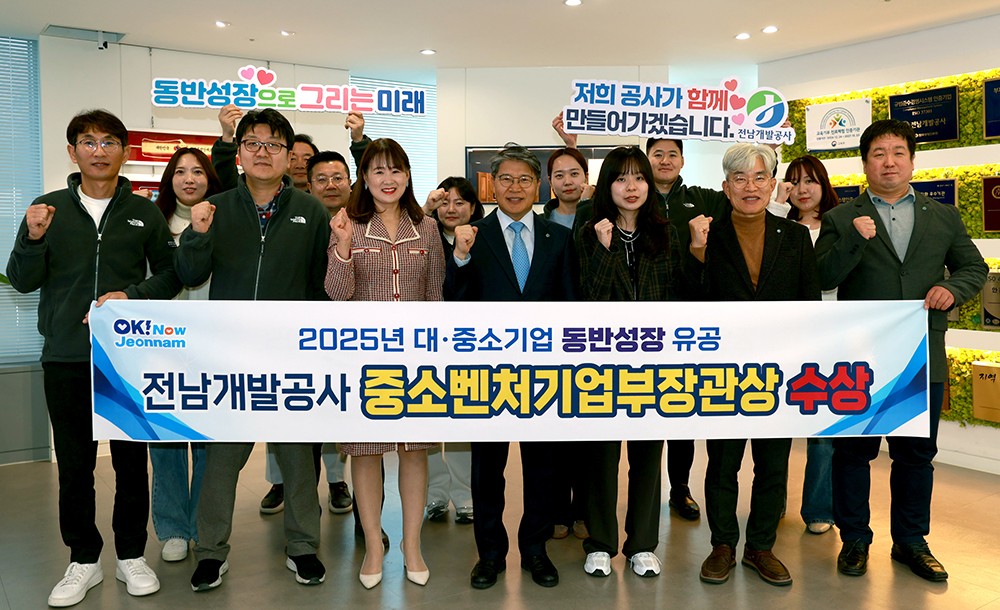 Àü³²°³¹ß°ø»ç´Â 25ÀÏ Áß¼Ò±â¾÷Áß¾Óȸ KBIZȦ¿¡¼ ¿¸° ¡®2025³â µ¿¹Ý¼ºÀå ÁÖ°£ ±â³ä½Ä¡¯¿¡¼ Áß¼Ò±â¾÷°úÀÇ »ó»ýÇù·Â ¹× µ¿¹Ý¼ºÀå ¼º°ú¸¦ ÀÎÁ¤¹Þ¾Æ Áß¼Òº¥Ã³±â¾÷ºÎ Àå°ü ǥâÀ» ¼ö»óÇß´Ù.