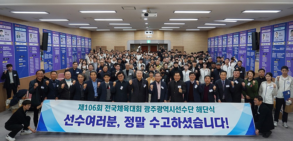 ±¤ÁÖ½ÃüÀ°È¸´Â 25ÀÏ ¿ÀÈÄ 2½Ã ±¹¹Î»ýȰ°ü ¼¼¹Ì³ª½Ç¿¡¼­ Àü°©¼ö ±¤ÁÖ½ÃüÀ°È¸Àå, üÀü Âü°¡¼±¼ö´Ü, Á¾¸ñº° ȸÀå Àü¹«ÀÌ»ç, °¨µ¶ ÄÚÄ¡ µî °ü°èÀÚ 200¿© ¸íÀÌ Âü°¡ÇÑ °¡¿îµ¥ ¡®Á¦106ȸ Àü±¹Ã¼À°´ëȸ ±¤ÁÖ¼±¼ö´Ü ÇØ´Ü½Ä¡¯À» °³ÃÖÇß´Ù.