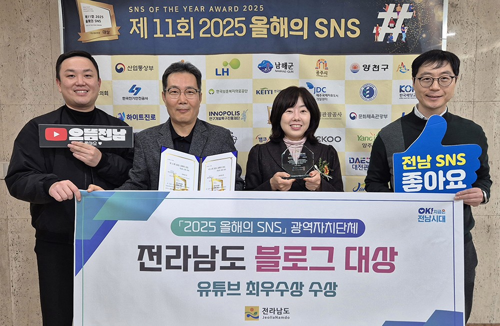 Àü³²µµ´Â À̳¯ ¡®2025 ¿ÃÇØÀÇ SNS¡¯¿¡¼ ±¤¿ªÀÚÄ¡´Üü ºí·Î±× ¡®´ë»ó¡¯°ú À¯Æ©ºê ¡®ÃÖ¿ì¼ö»ó¡¯À» ¹Þ¾Ò´Ù.