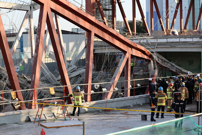 ÇÑÆí Àü³¯ ¿ÀÈÄ 1½Ã58ºÐ²² ±¤ÁÖ´ëÇ¥µµ¼°ü °ø»ç ÇöÀå¿¡¼± ÄÜÅ©¸®Æ® Ÿ¼³ ÁßÀÌ´ø 2Ãþ ¿Á»óÀÌ ¹«³ÊÁö¸é¼ Áö»ó ÄÜÅ©¸®Æ®¿Í ö±Ù ±¸Á¶¹°ÀÌ ¿¬´Þ¾Æ ºØ±«ÇÏ´Â »ç°í°¡ ¹ß»ýÇß´Ù.