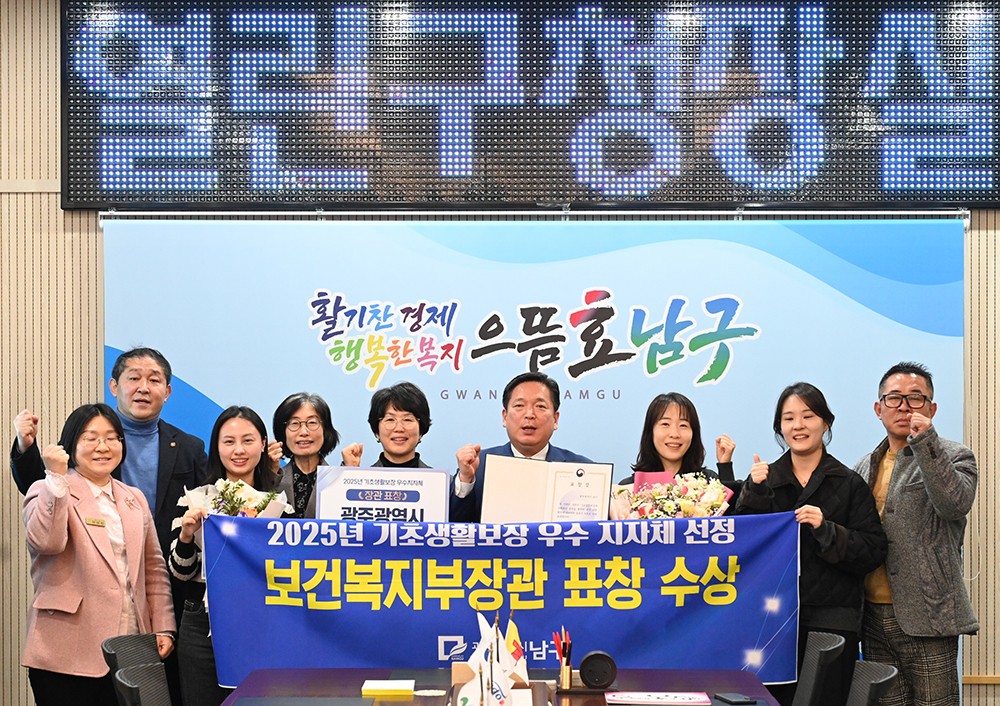 ±¤ÁÖ ³²±¸´Â ¡°ÃÖ±Ù º¸°Çº¹ÁöºÎ ÁÖ°ü ¡®2025³â ±¹¹Î±âÃÊ»ýȰº¸Àå ºÐ¾ß »ç¾÷ Æò°¡¡¯¿¡¼ ¿ì¼ö±â°üÀ¸·Î ¼±Á¤µÅ Àå°ü»óÀ» ¹Þ¾Ò´Ù¡±°í 28ÀÏ ¹àÇû´Ù.