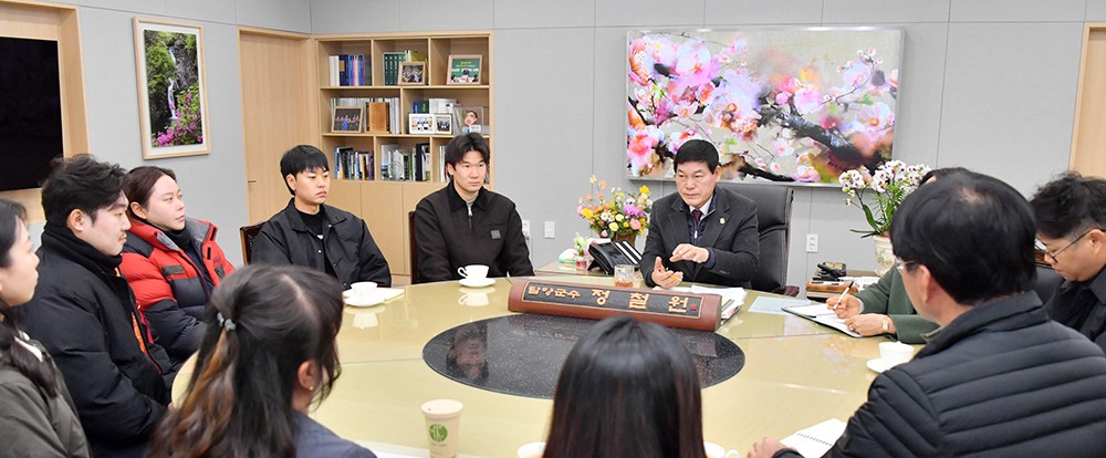 ´ã¾ç±ºÀº ¡°Ãֱ٠û»ç ¼Ò¼â¿ø½Ç¿¡¼ Áö¿ª ³ó¾÷ÀÇ ¹Ì·¡¸¦ À̲ø¾î°¥ û³â ³ó¾÷Àΰú ³ó¾÷»ç°üÇб³ Á¹¾÷»ýµéÀÌ Âü¼®ÇÑ °¡¿îµ¥, ÇöÀåÀÇ ¸ñ¼Ò¸®¸¦ Á÷Á¢ µè°í ¹ßÀü ¹æ¾ÈÀ» ¸ð»öÇϱâ À§ÇÑ ¡®Ã»³â ³ó¾÷ÀÎ ¼ÒÅë °£´ãȸ¡¯¸¦ °³ÃÖÇß´Ù¡±°í 8ÀÏ ¹àÇû´Ù.<»çÁø>