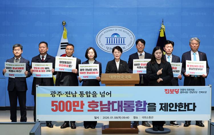 Àü ÀÇ¿øÀº ¡°±¤ÁÖ¡¤Àü³²¡¤ÀüºÏÀº ¿ª»çÀû, ¹®ÈÀû, Á¤¼ÀûÀ¸·Î °øÅëÀÇ Á¤Ã¼¼ºÀ» °¡Áø Á¤Ä¡°æÁ¦ °øµ¿ ¿î¸íü·Î¼ 500¸¸ È£³²´ëÅëÇÕÀ» ½ÇÇöÇØ¾ß È£³²¹ø¿µ ½Ã´ë¸¦ ¿ ¼ö ÀÖ´Ù¡±¸é¼ ¡°È£³²ÀÌ Ç³ºÎÇÑ Àç»ý¿¡³ÊÁö·Î ¹ÝµµÃ¼¿Í AI»ê¾÷À» ÁÖµµÇÏ´Â Áö¹æ½Ã´ë ±ÕÇü¹ßÀüÀÇ »õ·Î¿î Ç¥ÁØÀÌ µÉ ¼ö ÀÖµµ·Ï ´ëÇѹα¹À» Àç¼³°èÇÑ´Ù´Â °¢¿À·Î È£³²´ëÅëÇÕÀ̶ó´Â °ú°¨ÇÏ°í ´ë´ãÇÑ ½ÇõÀ» ÇØ¾ß ÇÒ ¶§¡±¶ó°í °Á¶Çß´Ù.