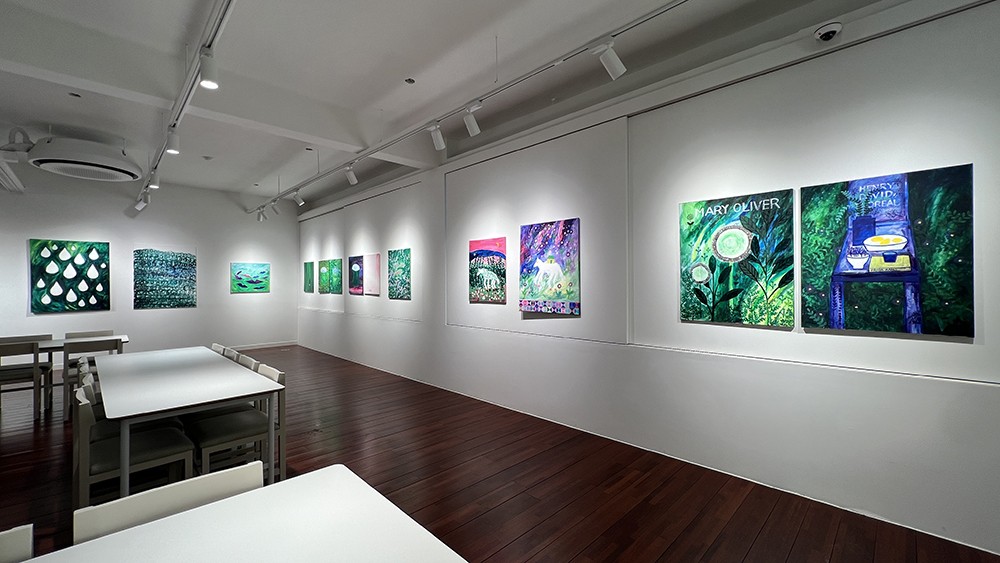 À̹ø Àü½Ã¿¡¼´Â ¾ÆÅ©¸±°ú °ú½´¸¦ Ȱ¿ëÇØ Ǫ¸£¸§ÀÇ °¨°¢À» °Á¶ÇÑ È¸È ÀÛ¾÷À» ¼±º¸ÀδÙ. ¡®±×·¡¿ä¡¯, ¡®ºØ´ë °¨±â¡¯ µîÀÇ ÀÛǰÀº »óó ÀÔÀº ´ë»óÀÇ ¸¶À½À» ä¿ì´Â ÀÚ¿¬ÀÇ ¿¡³ÊÁö¸¦ ½Ã°¢ÈÇÑ ÀÛ¾÷ÀÌ´Ù. È¸é ¼Ó °ã°ãÀÌ ½×ÀΠǪ¸¥ »ö°¨Àº ½Ã°£ÀÌ ÃàÀûµÈ dz°æÀ» ´ã¾Æ³»¸ç, ÀÚ¿¬ÀÇ ´Ü´ÜÇÔ°ú ȸº¹ÀÇ ÈûÀ» µå·¯³½´Ù.