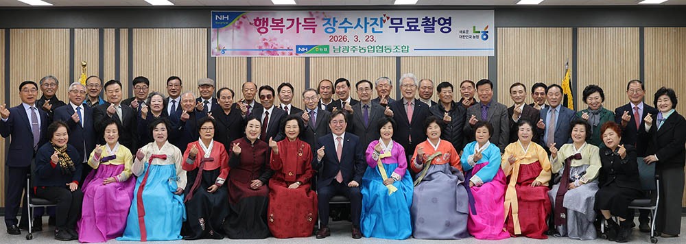 ³²±¤ÁÖ³óÇùÀº 25ÀÏ ¡°Áö³ 23ÀÏ ³²±¤ÁÖ³óÇù º»Á¡ 2Ãþ ´ëȸÀǽǿ¡¼ ¿ø·ÎÁ¶ÇÕ¿øÀÇ ¹«º´ Àå¼ö¸¦ ±â¿øÇÏ¸ç ¡®Çູ°¡µæ Àå¼ö»çÁø¡¯ ¹«·áÃÔ¿µ Çà»ç¸¦ °¡Á³´Ù¡±°í ¹àÇû´Ù.<»çÁø>