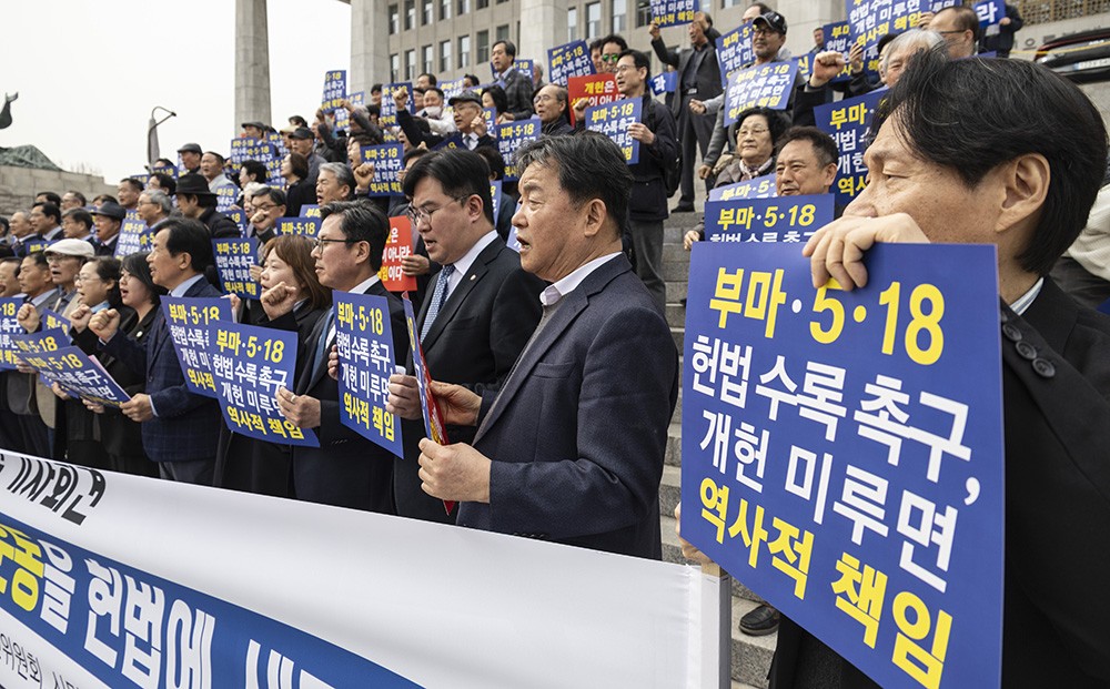 ¿À¿ù Á¤½Å°ú ºÎ¸¶Ç×Àï Á¤½ÅÀÇ Çå¹ý Àü¹® ¼ö·ÏÀ» Ã˱¸ÇÏ´Â ´ÜüµéÀÌ ±¹È¸¿¡ ÇåÁ¤Áú¼ ¼öÈ£¸¦ À§ÇÑ °³Çå ÃßÁøÀ» Ã˱¸Çß´Ù.