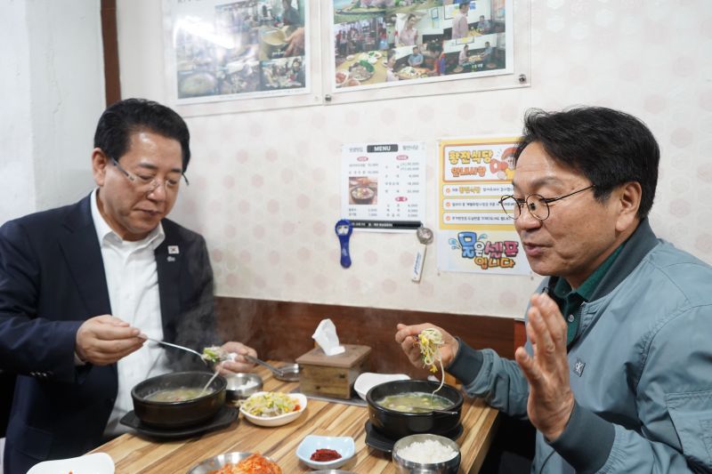 ±è ¿¹ºñÈ帴 À̳¯ ° ½ÃÀå°ú ÇÔ²² ¼øÃµ½Ã ¿ôÀå¿¡¼ »óÀΰú ½Ã¹ÎµéÀ» Á÷Á¢ ¸¸³µ´Ù. ±è ¿¹ºñÈĺ¸¿Í ° ½ÃÀåÀº ¡®ÃÖ±ÙÀÇ ¾î·Á¿î °æÁ¦ »óȲÀ» ¸öÀ¸·Î ü°¨Çϰí ÀÖ´Ù¡¯´Â »óÀεéÀÇ È£¼Ò¿¡ °ø°¨À» Ç¥ÇÏ°í ¡°¹Î»ýÁö¿ø±Ý Áö±Þ µî °ð¹Ù·Î ´ëÃ¥À» °±¸Çϰڴ١±°í ¾à¼ÓÇß´Ù. ÀÌ¾î ±¹¹ä°ñ¸ñ¿¡¼ »óÀεé°ú ½Ä»çµµ °°ÀÌ ÇÏ¸é¼ ¹Î½ÉÀ» ûÃëÇß´Ù.
