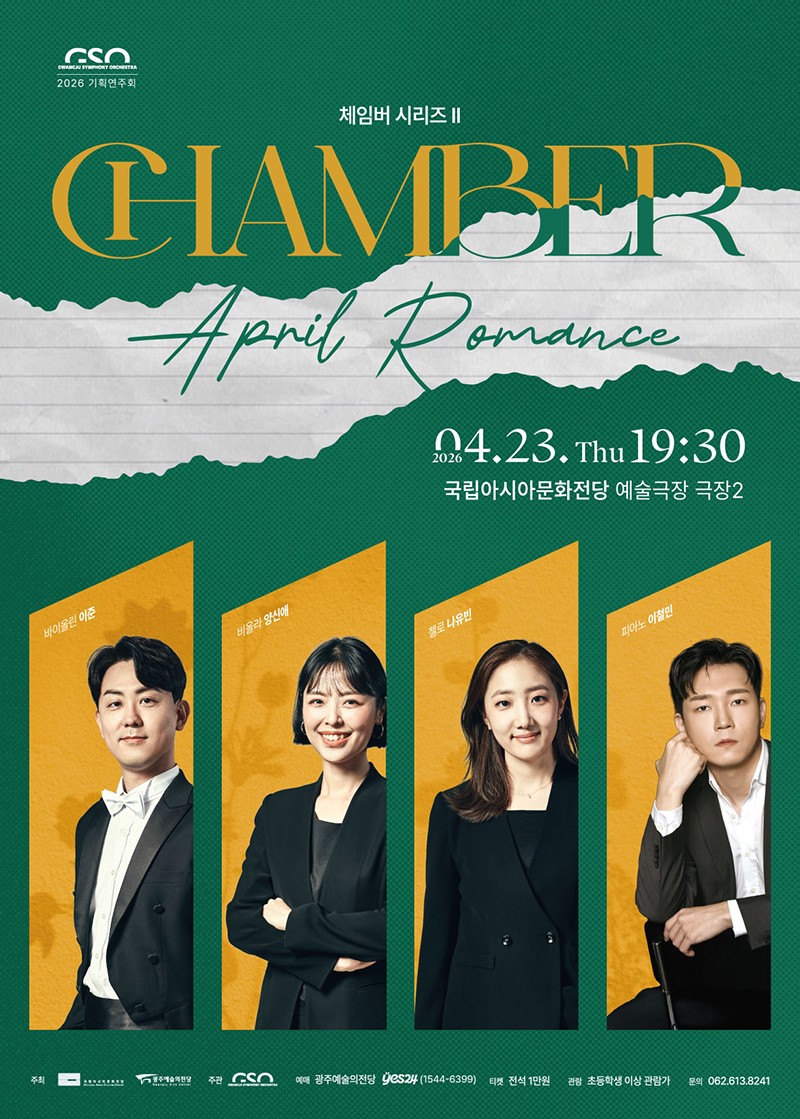 ±¤Áֽø³±³Çâ¾Ç´Ü(ÀÌÇÏ ±¤ÁÖ½ÃÇâ)Àº ¿À´Â 23ÀÏ ¿ÀÈÄ 7½Ã30ºÐ ±¹¸³¾Æ½Ã¾Æ¹®ÈÀü´ç(ACC) ¿¹¼ú±ØÀå ±ØÀå2¿¡¼ üÀÓ¹ö ½Ã¸®Á ¡®April Romance¡¯¸¦ ¼±º¸ÀδÙ.