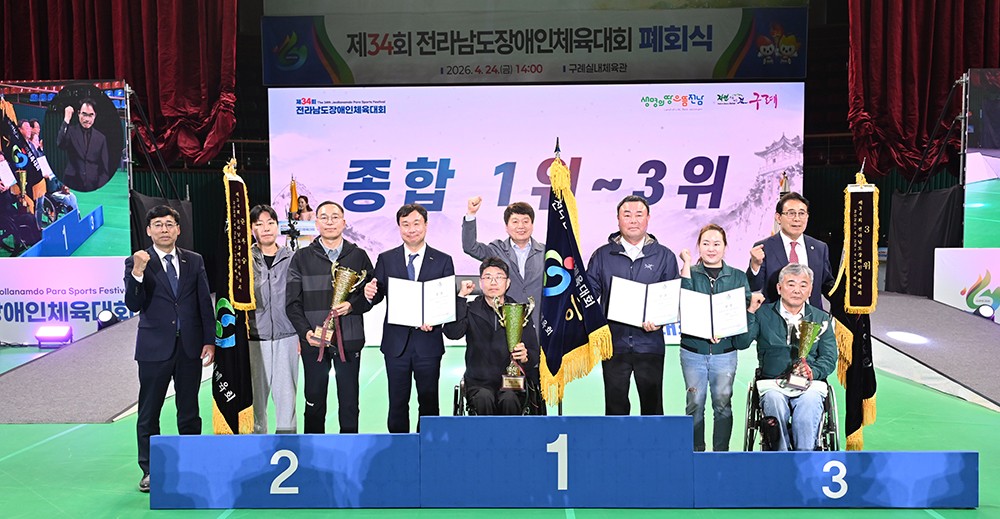 Àü³² Àå¾ÖüÀ°ÀεéÀÇ ÃÖ´ë ÃàÁ¦ÀÎ Á¦34ȸ Àü³²µµÀå¾ÖÀÎüÀ°´ëȸ°¡ Áö³ 24ÀÏ ±¸·Ê °ø¼³¿îµ¿Àå¿¡¼ Æóȸ½ÄÀ» ³¡À¸·Î 3Àϰ£ÀÇ ÀÏÁ¤À» ¸¶¹«¸®Çß´Ù. <»çÁø>
