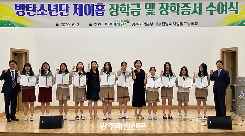 Àü³²¿©ÀÚ»ó¾÷°íµîÇб³´Â Áö³ 3ÀÏ ±³³» ¿ìÁÖ µ¿Àΰü¿¡¼ Çлý 10¸í(1Çгâ 5¸í, 2Çгâ 3¸í, 3Çгâ 2¸í)¿¡°Ô 2020³â ¹æÅº¼Ò³â´Ü(BTS) ¡®Á¦ÀÌÈ© ÀåÇбݡ¯À» Àü´ÞÇß´Ù.