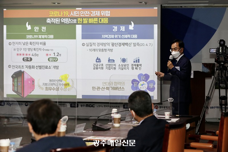 ±è ±¸Ã»ÀåÀº ¹ßÇ¥¿¡¼ ¡°¡®³» »îÀÌ ÇູÇÑ ±¤»ê¡¯À» ¸ñÇ¥·Î ¾ÈÀü°ú °æÁ¦¿¡ ¿ª·®À» ÁýÁßÇß°í Áö³ 2³â°£ ±¸ÃàÇÑ ¾ÈÀü ÀÎÇÁ¶ó¸¦ Åä´ë·Î Äڷγª19¿¡ ü°èÀûÀ¸·Î ´ëÀÀÇß´Ù¡±°í ¼Ò°³Çß´Ù.
