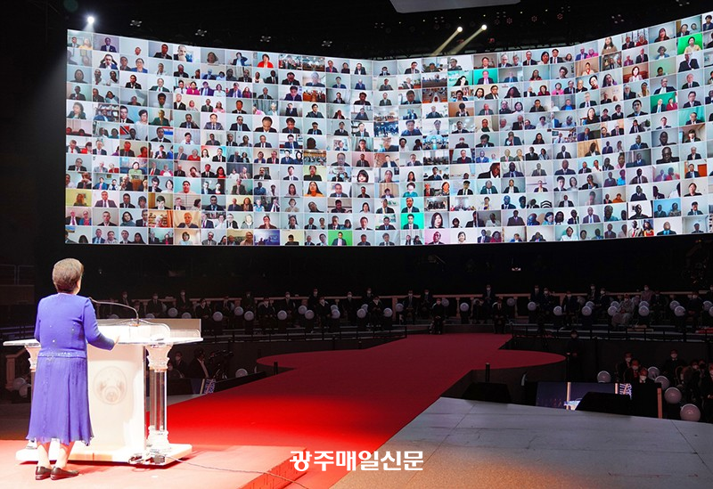 Äڷγª19 ÆÒµ¥¹Í¿¡¼ Æòȼ¼°è·Î Àüȯ½Ã۱â À§ÇÑ ¡®Á¦5ȸ ½Å(ãê)ÅëÀϼ¼°è ¾ÈÂøÀ» À§ÇÑ 100¸¸ ¿Â¶óÀÎ Èñ¸ÁÀüÁø´ëȸ¡¯°¡ Áö³´Þ 28ÀÏ ¿Â¶óÀÎÀ¸·Î ¼¼°è 194°³±¹ 100¸¸¿©¸íÀÌ Âü¼®ÇÑ °¡¿îµ¥ °³ÃֵƴÙ.