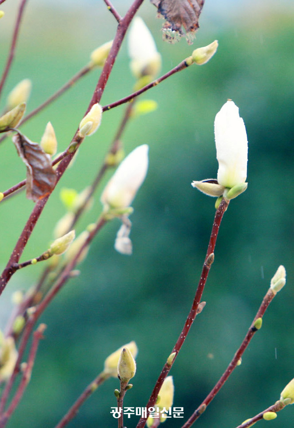 °¡À»ºñ°¡ ³»¸° 13ÀÏ ¿ÏµµÀ¾ °¡¿ë¸¶À» ±æ°¡¿¡ Ãʺ½ ÀÙÀÌ ³ª¿À±â Àü¿¡ ÇÇ´Â ¸ñ·Ã²ÉÀÌ ²É¸Á¿ïÀ» ÅÍÆ®·Á ´«±æÀ» ²ø°í ÀÖ´Ù. /¿¬ÇÕ´º½º
