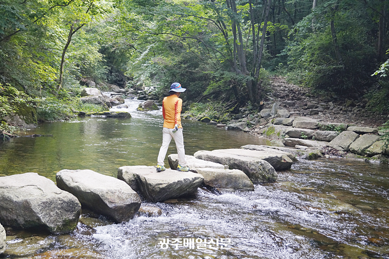 ´ö»ê°è°îÀ» µû¶ó ¿Ã¶ó°¡´Âµ¥ °è°îÀº £Àº ³ìÀ½¿¡ °¨½Î¿© ÀÖ°í, ¸¼Àº ¹°ÀÌ °í¿äÇÏ°Ô Èê·¯°£´Ù. ¿ÀÅäÄ·ÇÎÀåÀ» Áö³ª »ýÅÂŽ¹æ·Î¸¦ °È±â ½ÃÀÛÇÑ´Ù. û¾ÆÇÑ ¼Ò¸®¸¦ ³»¸ç Èê·¯°¡´Â ¹°¼Ò¸®´Â ¸Å¹ÌµéÀÌ ³»´Â °íÀ½°ú À½Á¤À» ¸ÂÃá´Ù.