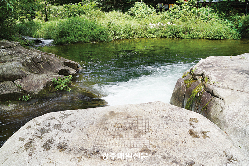 ¹°ÁÙ±â´Â ±ÞÇÒ ¶§´Â ¿©¿ïÀ» ¸¸µé¸ç ¼¼Â÷°Ô Èê·¯°¡°í, ¿©À¯°¡ ÀÖÀ» ¶§´Â ¼Ò³ª ´ãÀ» ¸¸µé¾î ½¬¾ú´Ù °£´Ù. ¾Æ·¡¿ë¼Ò ±Ùó¿¡ À̸£ÀÚ ¼Ò¹ÚÇÏ´ø dz°æÀÌ ¾Æ±âÀÚ±âÇÑ ¹ÙÀ§Áö´ë·Î ¹Ù²ï´Ù. ±×¸®°í ´ö»ê°è°î ÃÖ°íÀÇ ºñ°æÀÌ ÆîÃÄÁø´Ù. ¸î °³ÀÇ ÃþÀ¸·Î ³Ê·°¹ÙÀ§¸¦ ÀÌ·é °è°îÀº ¾Ï¹ÝÀÇ È¨ÅëÀ» Ÿ°í ¿©¿ï°ú ÀÛÀº ÆøÆ÷¸¦ ¸¸µç´Ù. ÆøÆ÷¼ö´Â °Å´ëÇÑ Àý±¸Åëó·³ ±íÀÌ ÆÐÀÎ ¹ÙÀ§ ȨÀ¸·Î ¶³¾îÁ® ¿ë¼Ò°¡ µÈ´Ù. ÆøÆ÷¼ö°¡ ¾ï°ÌÀÇ ¼¼¿ù µ¿¾È ½¬Áö ¾Ê°í ¶³¾îÁö¸é¼ ¾Ï¹ÝÀº Áö±Ýó·³ ±í°Ô ÆÐ¿© Ÿ¿øÇüÀÇ ¼Ò°¡ ¸¸µé¾îÁ³´Ù. ¿©±â¿¡¼ 200m À§ÂÊ¿¡ ¶Ç ÇϳªÀÇ ¿ë¼Ò°¡ ÀÖ¾î À̰÷ ¿ë¼Ò´Â ¾Æ·¡¿ë¼Ò¶ó ºÎ¸¥´Ù. ¾Æ·¡¿ë¼Ò¿¡ ¸Ó¹°´ø ¹°Àº ¹æÇâÀ» 90µµ·Î ²ªÀ¸¸é¼ ¾Ï¹ÝÀ» µû¶ó Èê·¯°£´Ù.