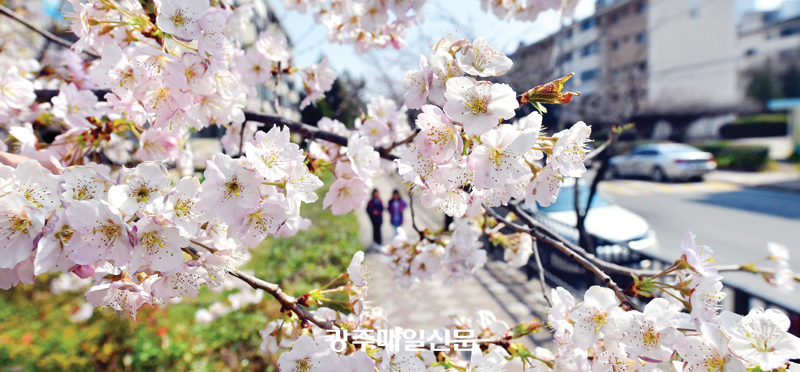 ±¤ÁÖ ³· ±â¿ÂÀÌ 20µµ±îÁö ¿À¸£´Â µî ¿Ãº½ µé¾î °¡Àå Æ÷±ÙÇÑ ³¯¾¾¸¦ º¸ÀÎ 26ÀÏ ¿ÀÈÄ ±¤ÁÖ ºÏ±¸ ¿î¾Ïµ¿ ÁÖ°ø3´ÜÁö ³» °æ¾çÃʵîÇб³ Àα٠°¡·Î¼ö±æ¿¡ º¢²ÉÀÌ È°Â¦ Æì ÇàÀεéÀÇ ¹ß°ÉÀ½À» °¡º±°Ô Çϰí ÀÖ´Ù./±è¾Ö¸® ±âÀÚ