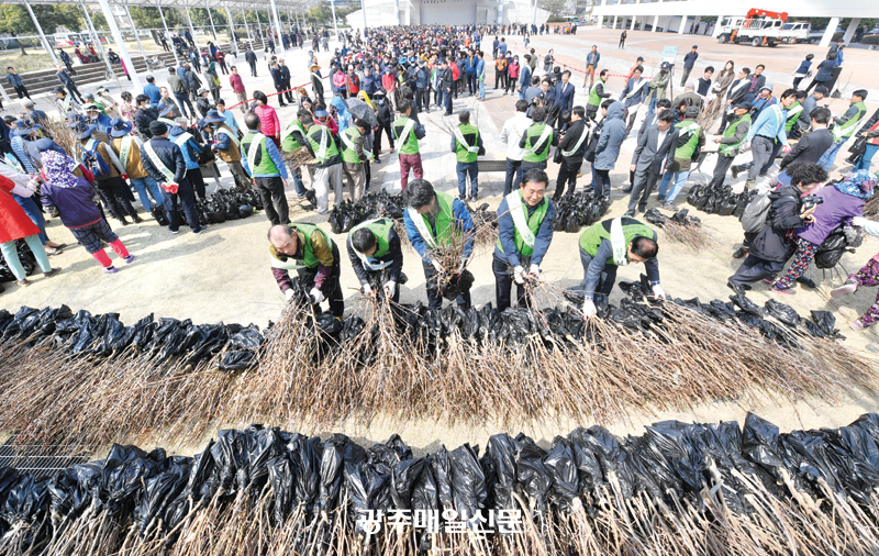 º»°ÝÀûÀÎ ½Ä¸ñöÀ» ¸Â¾Æ ±¤Áֽð¡ 28ÀÏ ¿ÀÀü ½Ãû ¾ß¿Ü±¤Àå¿¡¼ º½Ã¶ ³ª¹«½É±â ºÕ Á¶¼º°ú ¹é³â¹Ì·¡ Á¤¿øµµ½Ã Ãʼ®À» ´ÙÁö±â À§ÇÑ ¡®³ª¹« ³ª´²Áֱ⡯ Çà»ç¸¦ ¿¾ú´Ù. À̳¯ ±¤Áֽô ´ëÃß³ª¹«, ¼Ç⳪¹«, ¾ÞµÎ³ª¹« µî 3Á¾°ú ·ÎÁ¸® Çãºê 1Á¾À» Æ÷ÇÔ ÃÑ 4Á¾·ù¸¦ ½Ã¹Î 2õ¿©¸í¿¡°Ô 1Àδç 4±×·ç¾¿ ¼±Âø¼ø ¹«·á·Î ³ª´²Áá´Ù. /±è¾Ö¸® ±âÀÚ