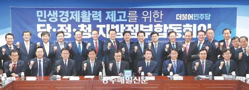 ´õºÒ¾î¹ÎÁÖ´ç ¼Ò¼Ó Àü±¹ 14°³ ½Ã¡¤µµÁö»ç¿Í ½ÃÀ塤±º¼ö ´ëÇ¥°¡ ÇÔ²²ÇÑ ¡®¹Î»ý°æÁ¦È°·Â Á¦°í¸¦ À§ÇÑ ´ç¡¤Á¤¡¤Ã» Áö¹æÁ¤ºÎ ÇÕµ¿È¸ÀÇ¡¯°¡ 12ÀÏ ¿ÀÈÄ ±¹È¸¿¡¼ ÀÌÇØÂù ´ëÇ¥¿Í ´çÁöµµºÎ, ±è»óÁ¶ û¿Í´ë Á¤Ã¥½ÇÀå, ±èµÎ°ü ÂüÁÁÀºÁö¹æÁ¤ºÎÀ§¿øÈ¸ À§¿øÀå, Áø¿µ ÇàÁ¤¾ÈÀüºÎ Àå°ü, ÀÌÀç¸í °æ±âÁö»ç, À̿뼷 ±¤ÁÖ½ÃÀå, ±è¿µ·Ï Àü³²Áö»ç, ¼ÛÇÏÁø ÀüºÏÁö»ç µîÀÌ Âü¼®ÇÑ °¡¿îµ¥ ¿·È´Ù. ¢º°ü·Ã±â»ç 2¸é /Àü³²µµ Á¦°ø