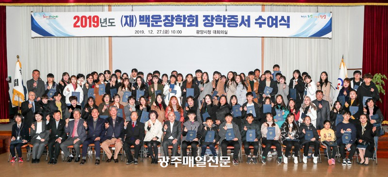 (Àç)¹é¿îÀåÇÐȸ(ÀÌ»çÀå Á¤Çöº¹)´Â ÃÖ±Ù ±¤¾ç½Ãû ȸÀǽǿ¡¼ ¿ÃÇØ ¹é¿îÀåÇлý¿¡ ¼±¹ßµÈ Çлý 481¸íÀ» ´ë»óÀ¸·Î ÀåÇÐÁõ¼ ¼ö¿©½ÄÀ» °³ÃÖÇß´Ù. À̹ø¿¡ ¼±¹ßµÈ ÀåÇлýÀº Áö¿ª´ëÇÐ 206¸í, ÀÏ¹Ý ´ëÇÐ(¿ø)»ý 201¸í, Ư±â Çлý 35¸í, ¼±ÇàÇлý 9¸í, Ư±âÁöµµ ¿ì¼öÇб³ 7°³±³·Î ÃÑ 5¾ï3õ395¸¸3õ¿øÀÇ ÀåÇбÝÀÌ Áö±ÞµÆ´Ù./±¤¾ç½Ã Á¦°ø