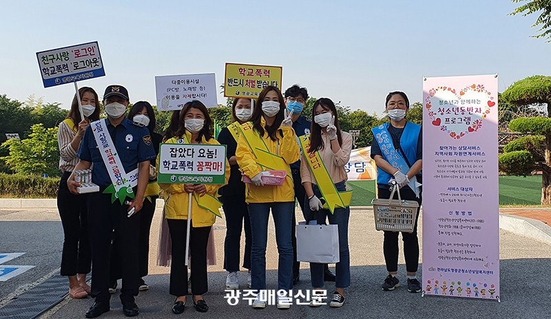¿µ±¤±ºÃ»¼Ò³â»ó´ãº¹Áö¼¾ÅÍ´Â Äڷγª19 ¿µÇâÀ¸·Î Áߴܵƴø µî±³ ¼ö¾÷ÀÌ ½ÃÀ۵ʿ¡ µû¶ó ÃÖ±Ù ÀÏÁÖÀϵ¿¾È °ü³» ÃÊ¡¤Áß¡¤°íµîÇб³ ±³¹® ¾Õ¿¡¼ Çб³Æø·Â ¿¹¹æ Ä·ÆäÀΰú ÇÔ²² û¼Ò³âµ¿¹ÝÀÚ ÇÁ·Î±×·¥À» ¼Ò°³ÇÏ´Â ¾Æ¿ô¸®Ä¡¸¦ ½Ç½ÃÇß´Ù.<»çÁø>