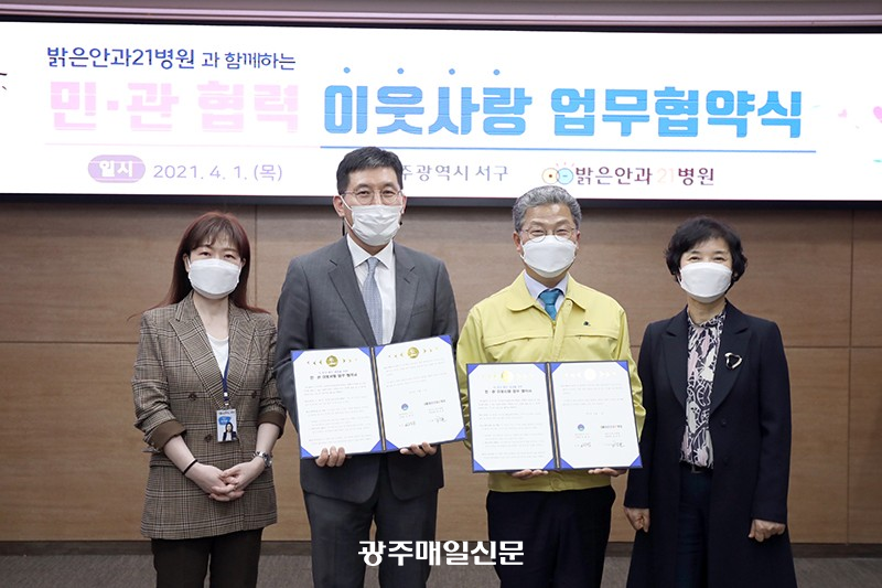¹àÀº¾È°ú21º´¿øÀº ÃÖ±Ù ±¤ÁÖ ¼±¸Ã»°ú ¡®´õ ¸¼°í ¹àÀº ¼¼»óÀ» À§ÇÑ ¹Î¡¤°ü ÀÌ¿ô»ç¶û ¾÷¹« Çù¾à¡¯À» ü°áÇß´Ù.<»çÁø>