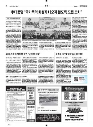 • 2002³â 4¿ù 30ÀÏ µî·Ï. µî·Ï¹øÈ£ ±¤ÁÖ °¡10(ìíÊÊ)/ÀÎÅͳݽŹ® µî·Ï¹øÈ£: ±¤ÁÖ ¾Æ-00222 (µî·Ï³â¿ùÀÏ 2015.12.22) / ¹ßÇࡤÆíÁýÀÎ: À̰æ¼ö / û¼Ò³âº¸È£Ã¥ÀÓÀÚ: ¿À¼º¼ö