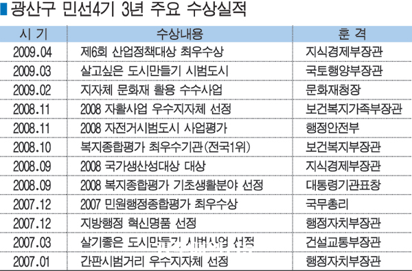 ¡¡±¸´Â ±¤ÁÖ ÃÖÃÊ·Î µµÀÔÇÑ ¾²·¹±â ¼ö°Å Åæ´ç ´Ü°¡Á¦µµ Àúºñ¿ë °íÈ¿À² µµ½Ã û¼ÒÇàÁ¤ÀÇ »õ ÀåÀ» ¿¾ú´Ù. ±¸´Â ½Ã¹Î´Üü µî°ú û¼ÒÇàÁ¤Çõ½ÅTFÆÀÀ» ²Ù·Á ¿¬°£ ¼ö½Ê¾ï¿øÀÇ ¿¹»êÀ» Àý°¨ÇÒ ¼ö ÀÖ´Â Åæ´ç ´Ü°¡Á¦¿Í °øµ¿ÁÖÅÃÀ» Áß½ÉÀ¸·Î ÇÑ À½½Ä¹° ÀÚüó¸® ½Ã½ºÅÛ(ACS)À» äÅÃÇß´Ù. ±¤»ê±¸ÀÇ Çõ½ÅÀûÀΠû¼ÒÇàÁ¤ Á¤Ã¥Àº 2008³â ÇàÁ¤¾ÈÀüºÎ°¡ 'Çõ½Å¸íǰ'¿¡ ¼±Á¤ÇØ Àü±¹ ÀÚÄ¡´Üü¿¡ ±ÇÀåÇßÀ» »Ó¸¸ ¾Æ´Ï¶ó UN°ø°øÇàÁ¤»ó ÃÖÁ¾ °á¼±¿¡µµ ÁøÃâÇØ ±× ¼º°ú¸¦ ±¹³»¿Ü¿¡¼ ÀÎÁ¤¹Þ¾Ò´Ù.