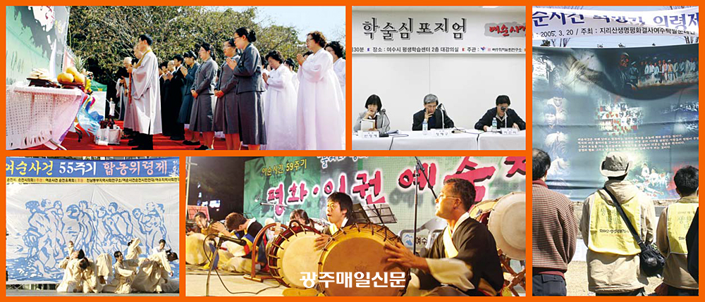 ÇÑÆí, 1980³â´ë ÈĹݿ¡ ¹ÎÁÖȰ¡ ½ÃÀÛµÇ¸é¼ 1990³â¿¡´Â ¿©¼ö¹®È¿øÀÌ ¹ß°£ÇÑ ¡®¿©¼ö¹®È¡¯¿Í ¼øÃµÀÇ Àü³²µ¿ºÎÁö¿ª»çȸ¿¬±¸¼Ò°¡ ¹ß°£ÇÑ ¡®Áö¿ª°ú Àü¸Á¡¯¿¡ ¿©¼ø»ç°Ç¿¡ ´ëÇÑ Áõ¾ð°ú ÀÚ·á°¡ ¼ö·ÏµÇ±â ½ÃÀÛÇÏ°Ô µÈ´Ù. ÀÌÈÄ 1998³â ¿©¼öÁö¿ª»çȸ¿¬±¸¼Ò°¡ ¿©¼ø»ç°Ç 50Áֱ⿡ ¡®¿©¼ø»ç°Ç ½ÇÅÂÁ¶»çº¸°í¼¡¯(Á¦1Áý) ¹ß°£À» °è±â·Î ¿©¼ø»ç°Ç¿¡ °üÇÑ ÇмúÇà»çµéÀÌ °³ÃÖµÆÀ¸¸ç, 4±ÇÀÇ ÀÚ·áÁý°ú º¸°í¼ ¹× 20¿©±ÇÀÇ Çмú¿¬±¸ÀÚ·áÁýÀÌ ¹ß°£µÆ´Ù. À̸¦ ¹ÙÅÁÀ¸·Î ÇÇÇØÀÚ¿Í °æÇèÀÚÀÇ »ý»ýÇÑ ±â¾ï°ú ±¸¼úÀÌ °è¼Ó ±â·ÏµÇ°í ½×¿© º»°ÝÀûÀÎ Áø»ó±Ô¸í ¿îµ¿ÀÇ Áß½ÉÀÌ µÈ´Ù.