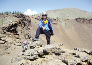 1½Ã°£ ÈÄ Çã·í²¨ È»êÁö¿ª¿¡ µµÂøÇؼ »ê Á¤»ó¿¡ À̸£´Ï ºÐȱ¸°¡ ÀÔÀ» ¹ú¸®µí °Å´ëÇÑ ¿øÇü±ØÀåó·³ º¸ÀδÙ. 900³â Àü, 2³â µ¿¾È È»êÆø¹ßÀÌ ÀÖ¾ú´Âµ¥ 100§°±îÁö ¿µÇâÀÌ ¹ÌÃÄ Çù°îÀÌ Åº»ýÇߴµ¥ ÇöÀç´Â »çÈ»êÀÌ´Ù. ³ª´Â µ¶Æ¯ÇÑ ÁöÇüÀ» ȼ±Áö¿¡ Á¤½Å¾øÀÌ ¿Å°Ü ±×¸°´Ù. Á¤»ó¿¡¼ ³»·Á´Ùº¸´Â ±¤°æÀº £Àº Ȳ°¥»ö À§¿¡ ÀÏÁ¤ºÎºÐ ¹Ð¸²À» º¸µí Çß´Ù.