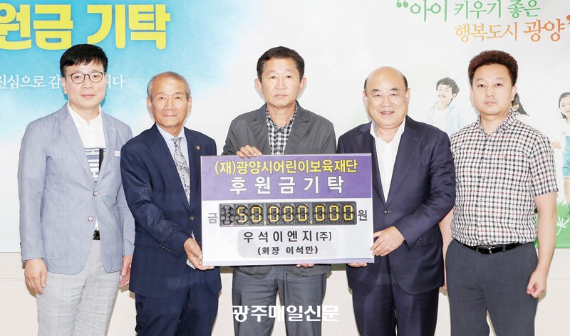 ±¤¾ç½Ã´Â 7ÀÏ ¡°¿ì¼®ÀÌ¿£Áö¢ß À̼®¸¸ ȸÀåÀÌ ÃÖ±Ù ±¤¾ç½Ãû Á¢°ß½Ç¿¡¼ (Àç)±¤¾ç½Ã¾î¸°À̺¸À°Àç´Ü¿¡ 5õ¸¸¿øÀ» ±âŹÇÏ¸ç µû¶æÇÑ ¸¶À½À» ÀüÇß´Ù¡±°í ¹àÇû´Ù. À̳¯ ±âŹ½Ä¿¡´Â Á¤Çöº¹ ±¤¾ç½ÃÀå, °¿ëÀç »óÀÓÀÌ»ç µî 15¸íÀÌ Âü¼®Çß´Ù.
