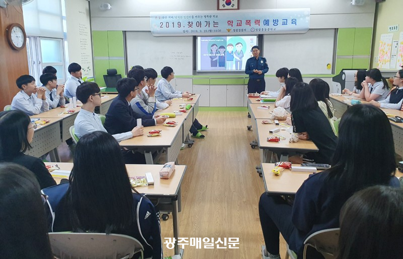 ¿µ±¤°æÂû¼ ¿©¼ºÃ»¼Ò³â°ú´Â ÃÖ±Ù ÇÏ°è¹æÇÐ ÀÌÈÄ Çб³Æø·Â ¹ß»ý ¿ì·Á°¡ ³ôÀº 9-10¿ùÀ» Çб³Æø·Â Ưº°¿¹¹æ±³À° ½Ç½Ã ±â°£À¸·Î ÁöÁ¤ÇÏ°í °ü³» ÃÊ¡¤Áß¡¤°íµîÇб³¸¦ ¹æ¹®ÇØ Çб³Æø·Â ¿¹¹æ±³À°À» ÁøÇàÇϰí ÀÖ´Ù.<»çÁø>