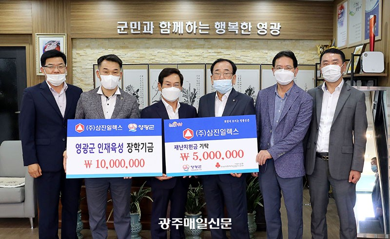 ¢ß»ïÁøÀÏ·º½º ±è¼º°ü ȸÀåÀÌ Áö³ 11ÀÏ ¿µ±¤±ºÀ» ¹æ¹®, Áö¿ªÀÎÀçÀ°¼º¿¡ ½á ´Þ¶ó¸ç ÀåÇÐ±Ý 1õ¸¸¿ø°ú Àç³Áö¿ø±Ý 500¸¸¿øÀ» ±âŹÇß´Ù.