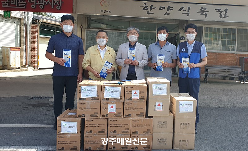ÇѺûº»ºÎ´Â Äڷγª19 È®»êÀ¸·Î ÀÎÇÑ ¸ÅÃâ °¨¼Ò¿Í Æø¿ì·Î Àç³ ¼öÁØÀÇ ÇÇÇØ ÀÌÈÄ Áö¼ÓµÇ´Â Æø¿°À¸·Î ´ÙÁß°í¸¦ °Þ°í ÀÖ´Â ¿µ±¤±º ÀüÅë½ÃÀå »óÀεéÀ» À§ÇØ Âø¿ë ½Ã ½Ã¿øÇÑ ¿©¸§¿ë ¸¶½ºÅ© ¾à 210¹Ú½º¸¦ ±¸ÀÔ, 3°³ ½ÃÀå(±¼ºñ°ñ¿µ±¤½ÃÀå, ¿µ±¤°íÃß½ÃÀå, ¿µ±¤Å͹̳νÃÀå) »óÀε鿡°Ô Àü´ÞÇß´Ù.