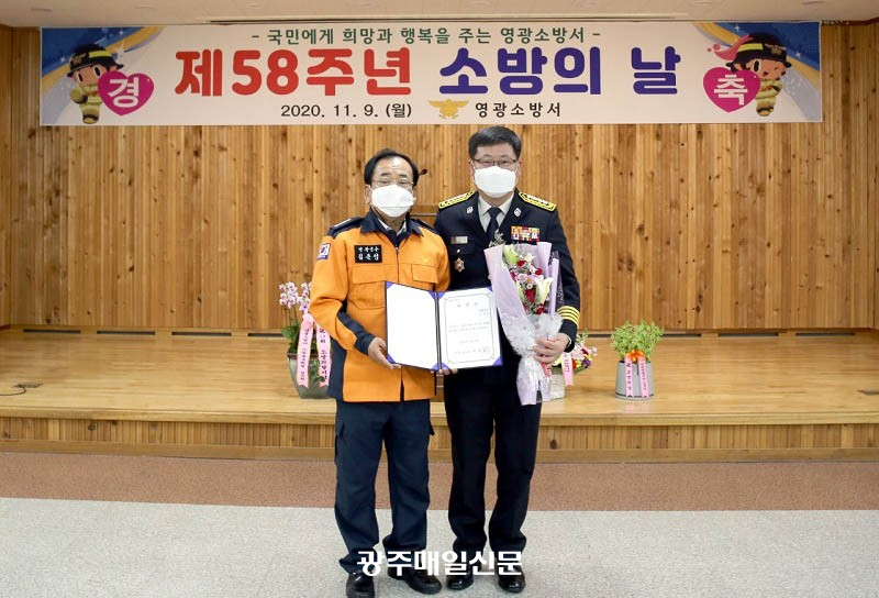 ±èÁؼº ¿µ±¤±º¼ö°¡ ÃÖ±Ù Á¦58Áֳ⠼ҹæÀÇ ³¯ ±â³ä½Ä¿¡¼ ¸í¿¹ ¿µ±¤¼Ò¹æ¼Àå À§ÃËÀåÀ» ¹Þ°í ¼Ò¹æ Ä·ÆäÀο¡ Âü¿©Çß´Ù. <»çÁø>