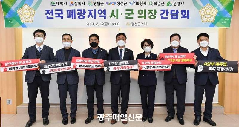 °£´ãȸ´Â 10³â Àû¿ë ½ÃÇÑ ±ÔÁ¤À¸·Î ÀÎÇØ Æó±¤Áö¿ª ¹ßÀü¿¡ °É¸²µ¹·Î ÀÛ¿ëÇϰí ÀÖ´Â ¡®Æó±¤Áö¿ª°³¹ßÁö¿ø¿¡ °üÇÑ Æ¯º°¹ý¡¯ Á¾·á¸¦ ¾ÕµÎ°í Æó±¤Áö¿ª 7°³ ½Ã¡¤±º(ȼø, Źé, »ïô, ¿µ¿ù, Á¤¼±, º¸·É, ¹®°æ) ÀÇÀå´ÜÀÌ Æó±¤Áö¿ª¹ý Á¾·á¿¡ °øµ¿ ´ëÀÀÇϱâ À§ÇØ ¿·È´Ù.