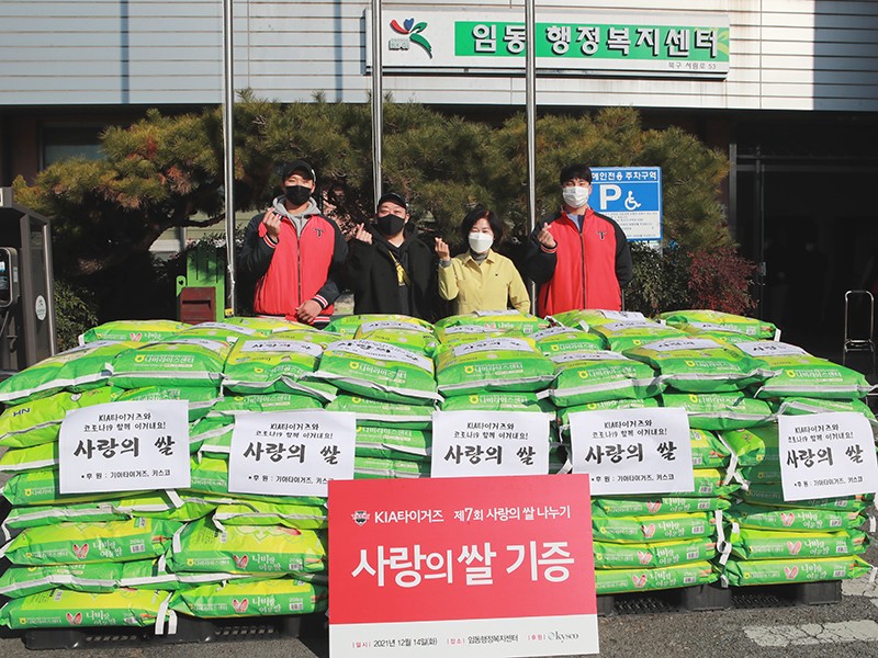 KIA ¼±¼ö´Ü°ú ±¸´Ü ÀÓÁ÷¿øÀº Áö³ 14ÀÏ ºÏ±¸ ÀÓµ¿ ÇàÁ¤º¹Áö¼¾ÅÍ¿¡¼ ¡®»ç¶ûÀÇ ½Ò¡¯ 3õ§¸(20§¸ 150Æ÷´ë)À» Àü´ÞÇß´Ù. »ç¶ûÀÇ ½ÒÀº ÀÓµ¿ Áö¿ª ±âÃʼö±ÞÀÚ °¡Á¤¿¡ Àü´ÞµÉ ¿¹Á¤ÀÌ´Ù. <»çÁø>
