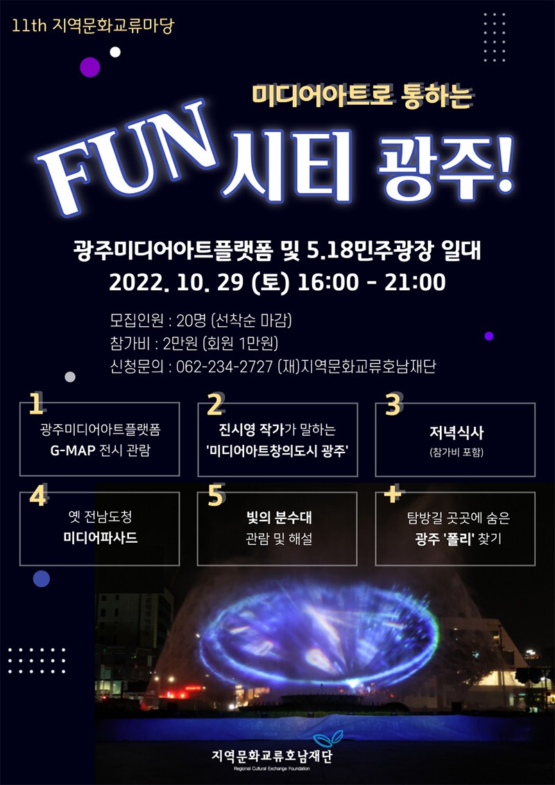 ÇÑÆí, Áö¿ª¹®È±³·ù¸¶´çÀº µµ½Ã¸¦ dz¼ºÇÏ°Ô ¸¸µå´Â Áö¿ªÀÇ ´Ù¾çÇÑ ¹®ÈÀû ¿ä¼ÒµéÀ» ½Ã¹Îµé°ú ÇÔ²² °øÀ¯ÇÏ°í ±³·ùÇÏ´Â ¸¸³²À» ÅëÇØ ¹®Èµµ½Ã ±¤ÁÖÀÇ ±â¹Ý Á¶¼º ¹× ¼¼´ë¿Í °èÃþ °£ ¹®È°ø°¨´ë Çü¼º¿¡ ±â¿©ÇϰíÀÚ ¸¶·ÃµÈ ÇÁ·Î±×·¥ÀÌ´Ù.