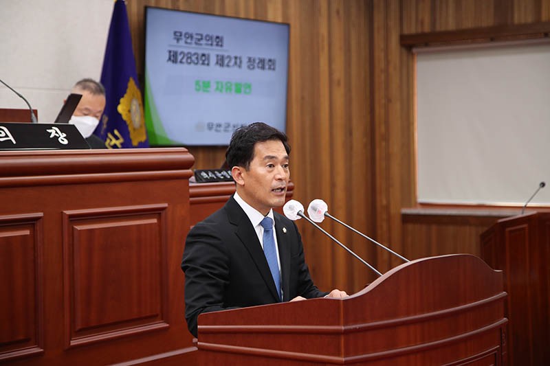 ÀÓµ¿Çö ¹«¾È±ºÀÇȸ ºÎÀÇÀåÀÌ Á¦283ȸ Á¦2Â÷ Á¤·Êȸ Á¦1Â÷ º»È¸ÀÇ¿¡¼ 5ºÐ ÀÚÀ¯¹ß¾ðÀ» ÅëÇØ ³ó»ê¹° °¡°Ý ¾ÈÁ¤ ±â±Ý È®´ë Á¶¼º ¹× Áö¿ø ǰ¸ñ ´Ùº¯È¸¦ Ã˱¸Çß´Ù.<»çÁø>