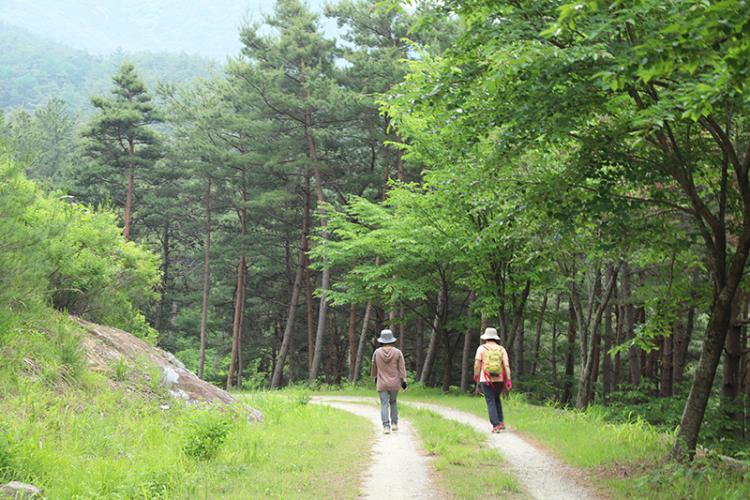 µ¿ÀǺ¸°¨ÃÌÀ» µÚ¿¡ µÎ°í ¿Ï¸¸ÇÑ ÀÓµµ¸¦ µû¶ó µ¿ÀǺ¸°¨ µÑ·¹±æÀ» º»°ÝÀûÀ¸·Î °È±â ½ÃÀÛÇÑ´Ù. µ¿ÀǺ¸°¨ µÑ·¹±æÀº ¿Õ»ê ÇØ¹ß 400-450m ³ôÀÌÀÇ »êÇ㸮¸¦ µû¶ó À̾îÁø´Ù. ÀÓµµ ÁÖº¯Àº ¿ïâÇÑ ½£À» ÀÌ·ç°í ÀÖ°í, ±æ°¡¿¡´Â Á¾Á¾ ¾û°ÏÄû, À¸¾Æ¸® °°Àº ¾ß»ýȰ¡ ²ÉÀ» ÇÇ¿ü´Ù.