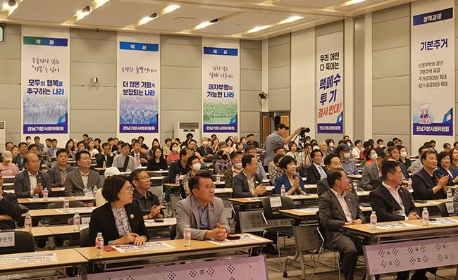 ÁÖöÇö Àü³²±âº»»çȸÀ§¿øÀåÀº Àλ縻À» ÅëÇØ ¡°°¢ÀÚµµ»ýÀÇ »ýÁ¸°æÀï »çȸ¿¡¼ ÃÖ¼ÒÇÑÀÇ »î¸¸ º¸ÀåÇÏ´Â º¹Áö»çȸÁ¤Ã¥¿¡´Â ÇѰ谡 ÀÖ°í, ÀÌÁ¦´Â Àΰ£´Ù¿î »î, ¡®±âº»Àû »î¡¯ÀÌ º¸ÀåµÇ´Â ±âº»»çȸ·Î ³ª¾Æ°¡¾ß ÇÑ´Ù¡±°í ¼±¾ðÇß´Ù.